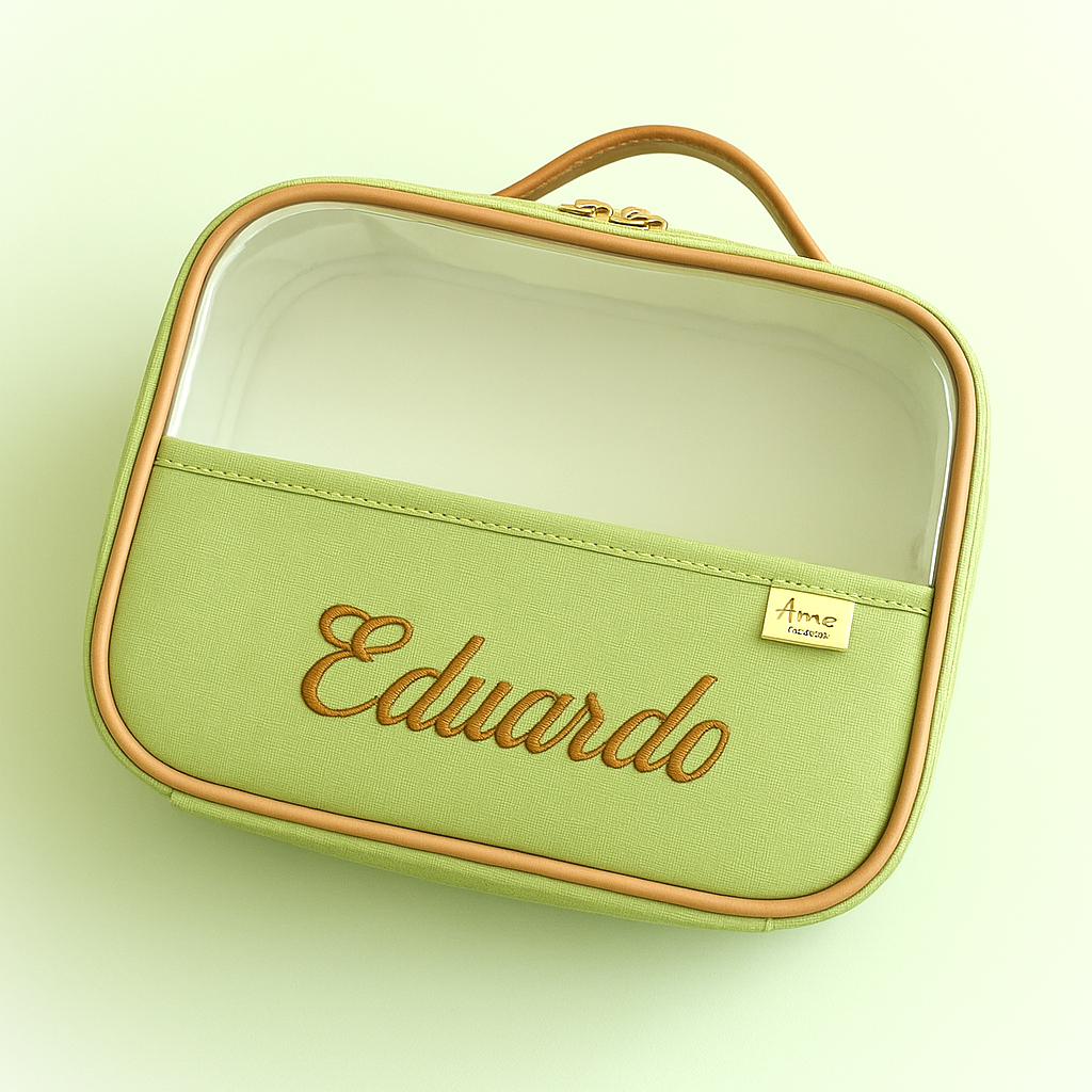 Organização e elegância na sua viagem! ✨ Nosso organizador de mala personalizado é perfeito para manter seus itens essenciais sempre à mão. Feito em material transparente, facilita a visualização e o acesso rápido.